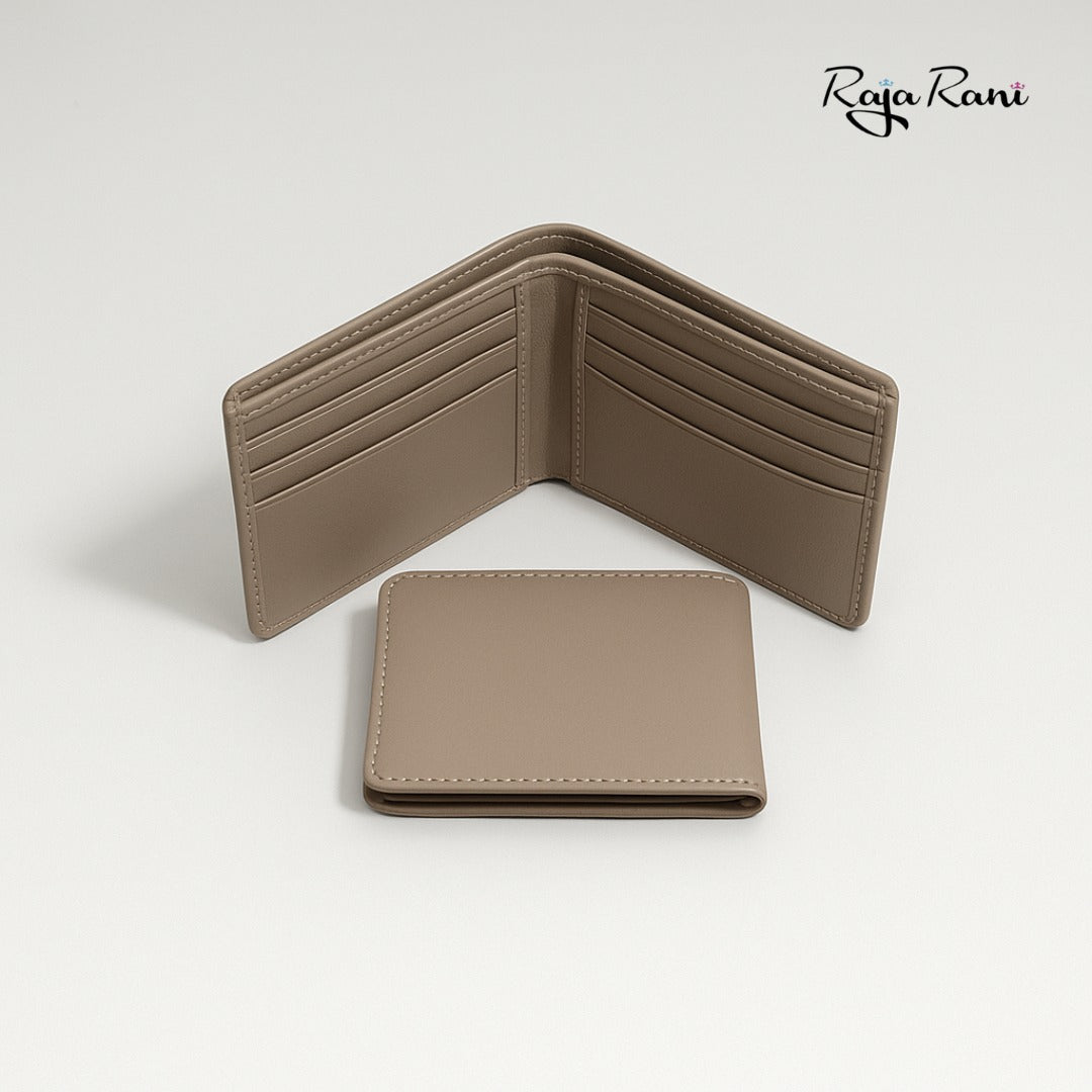 The Standard Oasis is a refreshing take on the classic bifold. This small-sized wallet is crafted from incredibly smooth, unblemished leather in a sophisticated pale beige (or taupe) color. Its completely monochromatic design and lack of external embellishments make it the ultimate expression of modern minimalism. The slim profile easily accommodates essential cards and currency, while the subtle, muted tone offers an elegant contrast to traditional dark leathers, perfect for the individual who values understated, contemporary luxury.